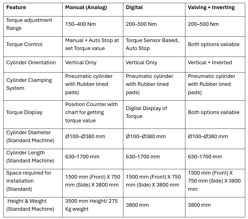 • Manual/Digital with Inverting – Automated cylinder inversion for full-process flexibility
